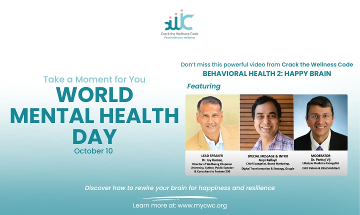 In this feature from Crack the Wellness Code, Dr. Jay Kumar (“The Happiness Professor”) and Gopi Kallayil (Chief Evangelist at Google) explore how the brain processes stress and joy and share evidence-based tools to cultivate